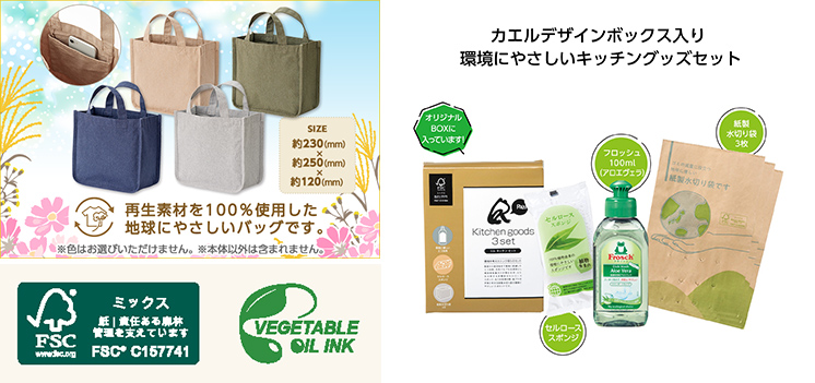 来場者プレゼントで再生素材を100%使用した地球にやさしいバッグを採用したり、